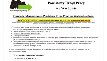Uprzejmie informujemy, że Powiatowy Urząd Pracy we Wschowie ogłasza: NABÓR WNIOSKÓW na niskooprocentowane pożyczki dla mikroprzedsiębiorców