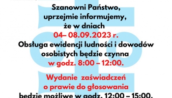 Uwaga zmiana godzin pracy stanowisk ds. obsługi ewidencji ludności i dowodów osobistych!