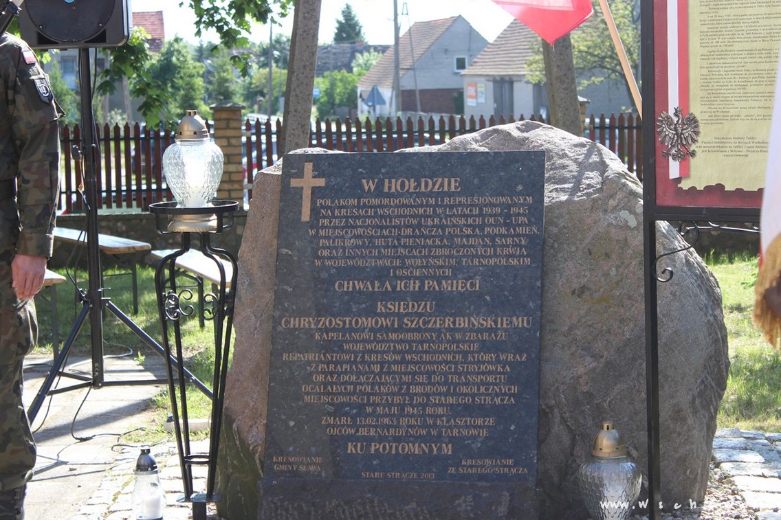 Te słowa wykute na pomniku Ofiar Ludobójstwa na Kresach, ustawionym na cmentarzu Rakowickim w Krakowie przypomniano podczas dzisiejszej uroczystości upamiętniającej ofiary Rzezi Wołyńskiej w Starym Strączu. W uroczystości, którą rozpoczęła Msza Święta w kościele pw. św. Jadwigi, udział wzięła Marta Panicz – Szajnkenig, zastępca burmistrza Miasta i Gminy Wschowa. Wyjątkowe spotkanie z historią uświetniła kolażem słowo-muzycznym młodzież ze Szkoły Podstawowej w Starym Strączu, podczas którego wielokrotnie wśród zgromadzonych gości i mieszkańców Strącza zakręciła się łza w oku. Organizatorzy dziękują za udział w uroczystości pocztu sztandarowego 4 Batalionu Inżynieryjnego Wojska Polskiego z Głogowa, OSP Stare Strącze oraz Zespołu Szkół Ponadgimnazjalnych w Sławie.