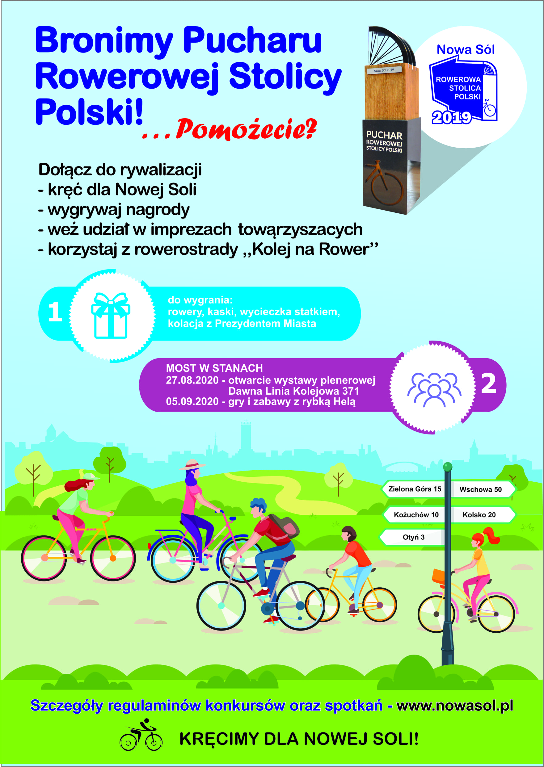 Ruszyła druga edycja akcji Rowerowa Stolica Polski. Nowa Sól, także dzięki wielkiemu zaangażowaniu mieszkańców powiatu wschowskiego, w ubiegłym roku zdobyła Puchar Rowerowej Stolicy Polski. W tym roku, chcąc utrzymać puchar w swoich rękach, kolejny raz zwraca się do mieszkańców naszej gminy o pomoc.