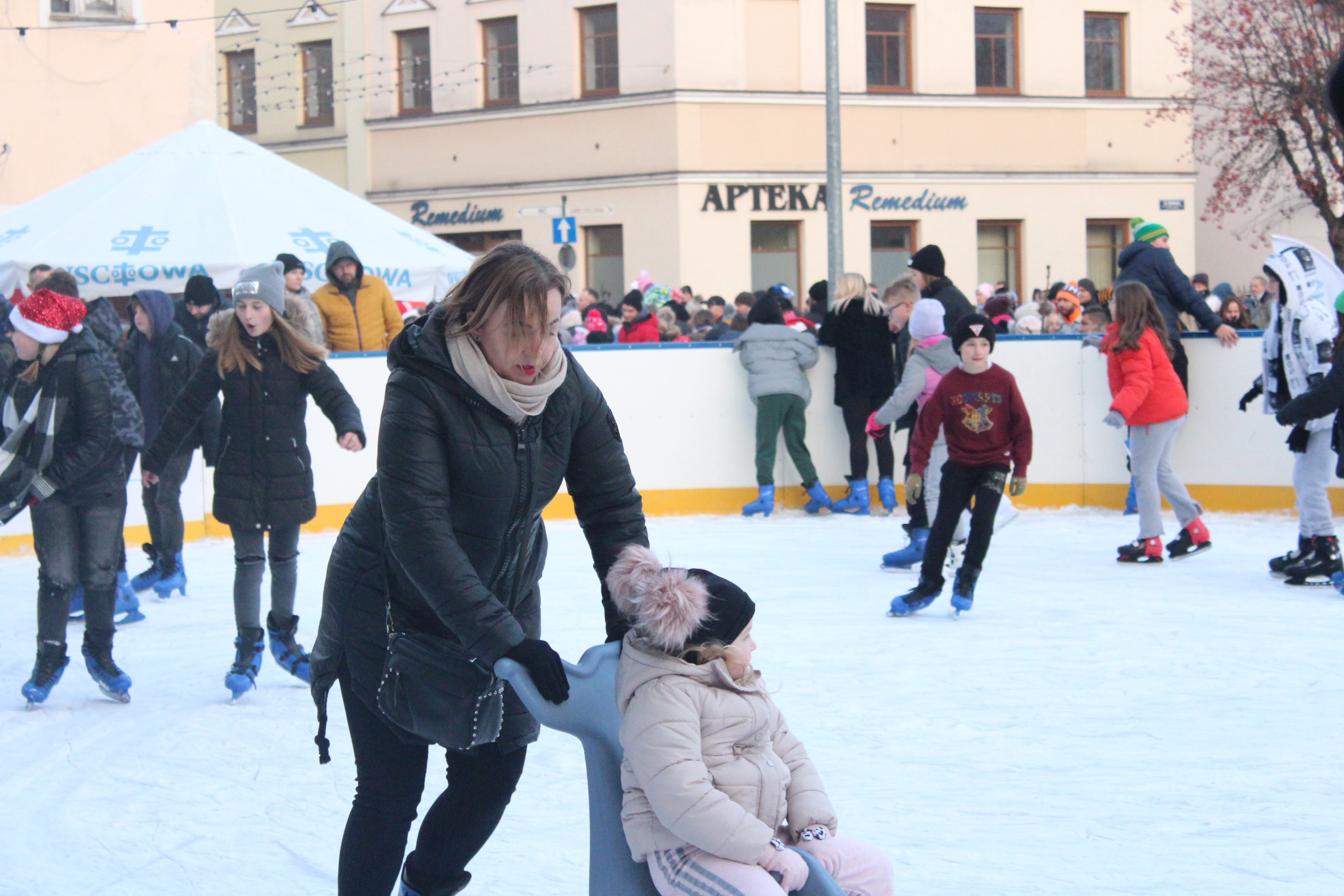Tegoroczne lodowisko na wschowskim rynku już od pierwszych dni cieszyło się wielkim zainteresowaniem. Prócz wypożyczalni łyżew, na amatorów ślizgania na lodzie czeka także automat z ciepłymi napojami, a jazdę umilają świąteczne przeboje.