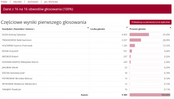 Szczegółowe wyniki oraz rozkład frekwencji prezentujemy poniżej.