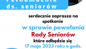 Pełnomocnik ds. seniorów zaprasza wszystkich zainteresowanych w najbliższą środę, 17 maja o godzinie 16.00 na spotkanie w sprawie powołania Rady Seniorów. Spotkanie odbędzie się w sali posiedzeń Urzędu Miasta i Gminy Wschowa.