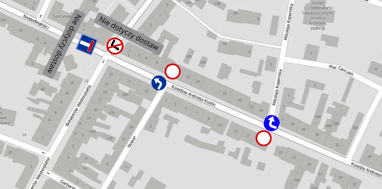 Uwaga ważna informacja dla kierowców! Od dzisiaj (środa 4.11) do poniedziałku (9.11) zamknięty będzie ruch na części ul. Księdza Kostki, od ulicy Nowej do ul. Kopernika. Związane jest to z koniecznością usunięcia awarii kanalizacji, która doprowadza do systematycznego niszczenia nawierzchni w czasie długotrwałych opadów. Przepraszamy za wszystkie utrudnienia i prosimy o wyrozumiałość kierowców, a także uważne kierowanie się znakami drogowymi.