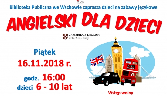 Biblioteka Publiczna we Wschowie już w najbliższy piątek zaprasza dzieci w wieku 6 – 10 lat na zajęcia językowe, które w formie zabawy pomogą przyswoić angielskie słówka. Poprowadzi je w ramach wolontariatu Dagmara Juśkiewicz, dysponentka międzynarodowego certyfikatu Cambridge English. Spotkania odbywają się w piątki, co dwa tygodnie, o godz. 16.00, w Oddziale dla Dzieci i Młodzieży. Wstęp wolny.